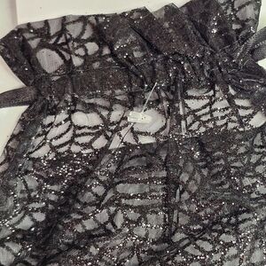 Set of 4 new Celebrate It brand organza and glitter Halloween party favor bags. Measure 6" x 8". Black spiderwebs, spiders, and bats.