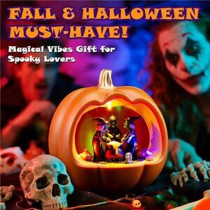 🧿🎃Spinning Witches - Dynamic Halloween: Unlike ordinary pumpkin decorations, this unique Halloween village features three witches gathered around a cauldron that rotates 360 degrees. The lifelike spinning effect is enhanced by warm LED string lights and classic holiday music. As light and shadow dance across its surface, it appears vividly animated. Perfect for tabletop display, it creates a dynamic and spooky atmosphere.