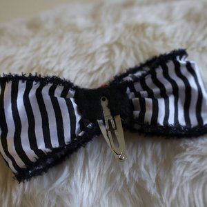 New Halloween Red Rose Stripe Hair Bow Clip - Black * White Hand Crafted