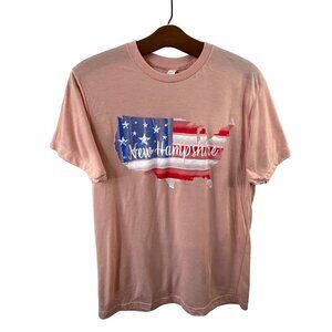 This lightweight pink graphic T-shirt features a USA map with a flag design and "New Hampshire" text. Made of a soft and durable polyester/cotton blend.