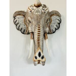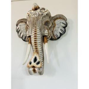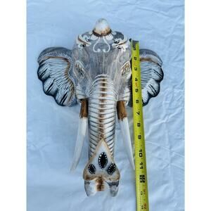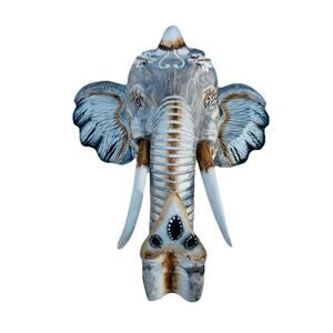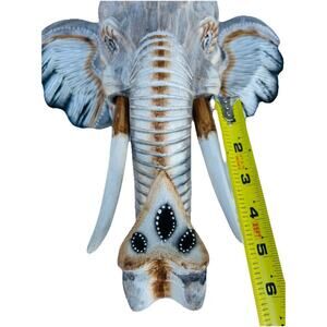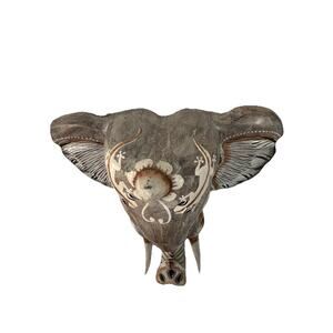 Add a touch of nature to your home decor with this beautiful hand-carved wooden elephant sculpture. The contemporary style sculpture features intricate carvings and is wall-mounted, making it a perfect addition to any room. The large-sized sculpture measures 13.5" in length, 12" in width, and 5" in height, weighing 1 pound 7 ounces.