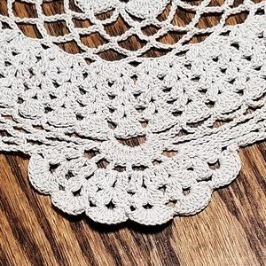 You can be purchasing a new beautifully stitched Natural colored 12" doily to accent your home. The doily is crocheted using Red Heart Natural size 10 crochet cotton thread. Pre-washed, blocked, and starched to ship. Washing instructions are included with doily in shipping.
