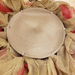 New - Hand Crafted Khaki and Red Deco Mesh Wreath