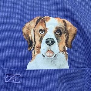 New Hand Printed Upcycled Medium St Bernard Puppy Dog Mens Button Down Shirt