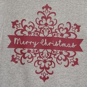 New Hand Printed Womens Large Merry Christmas Floral Scrollwork Short Sleeve Tee
