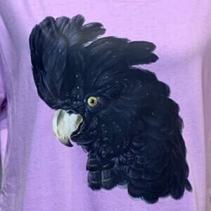 New Hand Printed Womens XL Black Cockatoo Parrot Ukraine Artist Fundraiser Tee