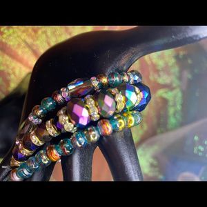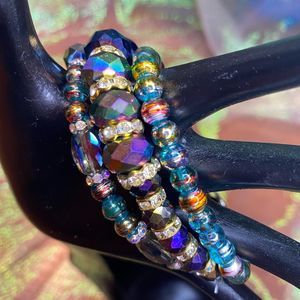 Gorgeous deep, vibrant, oily colors: purple-blues, pink, green, teal, yellow
