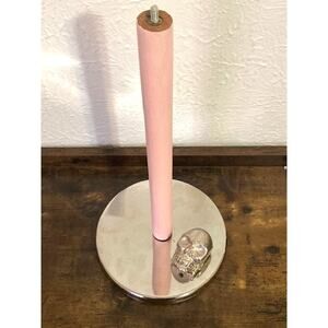 This paper towel holder was originally wood until I hand painted it several shades of cotton candy pale pink. The skull and base are silver. I love how the pink and silver look together. Quite sturdy too!