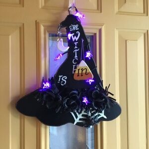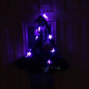 New Handcrafted The Witch is In/Out Wood Witch Hat Sign with Star lights