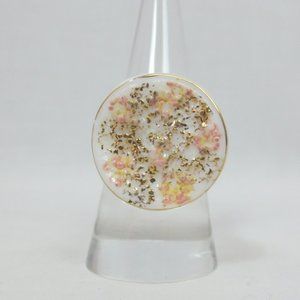 Peach & Gold "Ruffled" Glass Vintage Button Ring