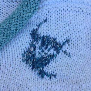 New! Handknit Mommy & Mini White Aqua Shades Seahorse Cardigan & Hat from NKS