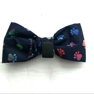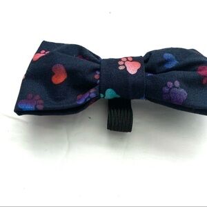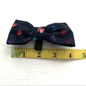 New Handmade 1 Dog Bow for Collar Navy Paw Print & Heart Polka Dots 4x2 inches