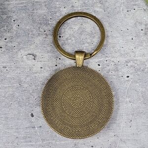 Beautiful upcycled black & gray abstract petal floral print fabric button charm on a bronze key ring.