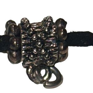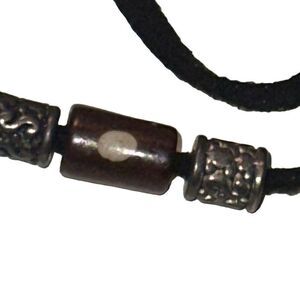 The Handmade Black Single Strand Cord Toggle Clasp Beaded Station Necklace features a sleek black cord adorned with silver-tone textured patterned beads spaced throughout. The beads add a striking contrast to the simple cord, offering a touch of elegance. The toggle clasp ensures easy wear, making this necklace a versatile and stylish accessory for both casual and formal outfits.