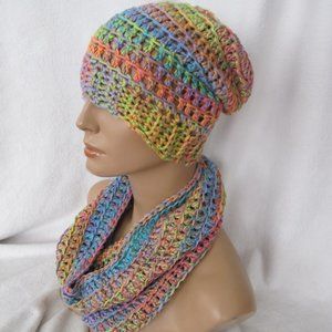 New Handmade Colorful Pastels Slouch Hat and Cowl Set