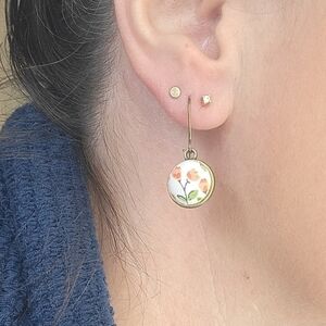 New Handmade | Denim Blue Upcycled Fabric Button Earwire Dangle Earrings