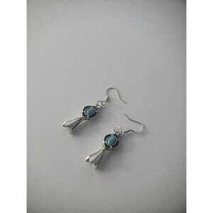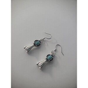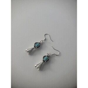 New Handmade Earrings Pierced Hook Drop Dangle Silver Tone Blue Stone Jewelry