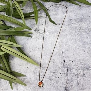 Beautiful vintage vibe dark orange & green flower fabric button charm on a bronze ball chain. Handmade in St. Louis. This makes a great gift!