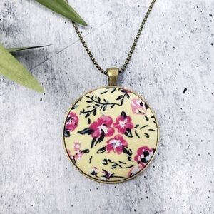 New Handmade | Floral Fabric Button Necklace.