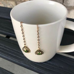 New Handmade Gold-Tone and Green "Slytherin" (Harry Potter) Threader Earrings (Version 26)