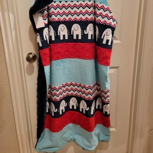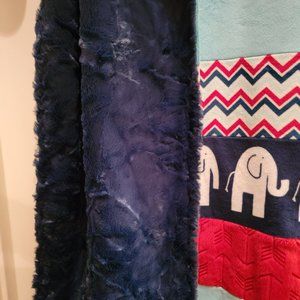 New Handmade Minky Navy, Red, and Blue Elephant Blanket