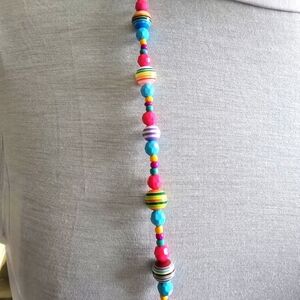 New Handmade Rainbow Colorful Necklace Beaded Hippie Pink blue Yellow 48"