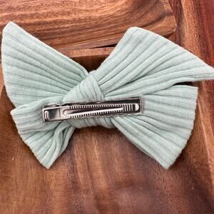 New Handmade Ribbon Bow Clip for Girls Light Green Sage Ribbed Fabric