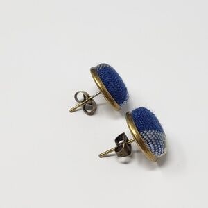 New Handmade | Upcycled Plaid Button Stud Earrings.