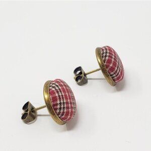 New Handmade | Upcycled Plaid Button Stud Earrings.