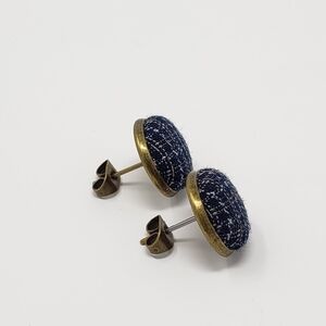 Navy and white menswear plaid button stud earrings made from an upcycled shirt. Handmade by Huffychic, so each item is unique.