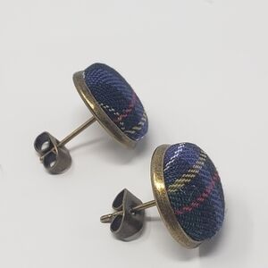 New Handmade | Upcycled Plaid Button Stud Earrings.