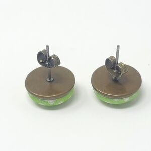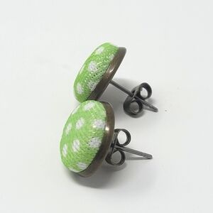 New Handmade | Upcycled Green White Polka Dot Button Stud Earrings.