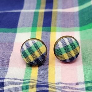 New Handmade | Upcycled Plaid Button Stud Earrings.