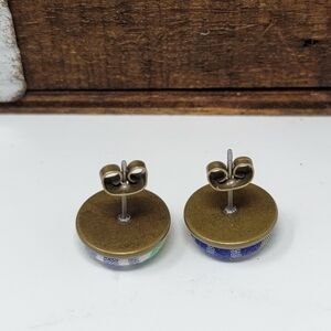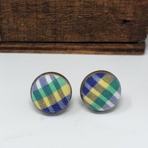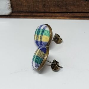 New Handmade | Upcycled Plaid Button Stud Earrings.