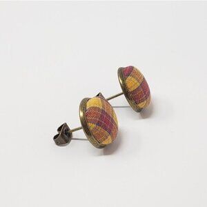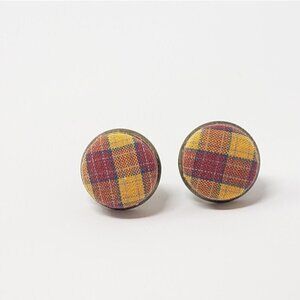 New Handmade | Upcycled Plaid Button Stud Earrings