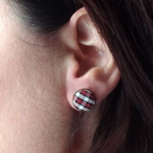 Vintage orange flower print stud earrings made from an upcycled shirt.