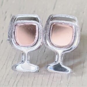 Beautiful reflective red, white, and rosé wine glass mirror stud earrings! This listing is for Rose Wine