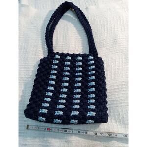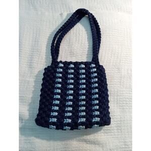 New Handmade Women's Knit Handbag Blue with Geo Pattern Double Top Handlesà