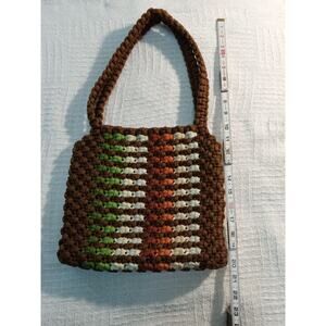 New Handmade Women's Knit Handbag Brown with Geo Pattern Double Top Handles