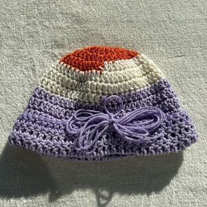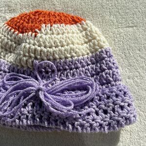 New Handmade crochet purple cream,â and orange, cuffedâstretchy beanie hat