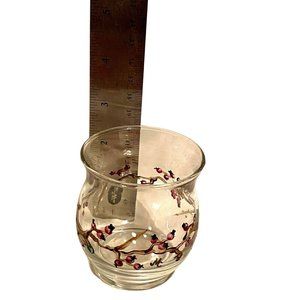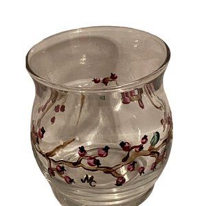 New Handpainted Signed Clear Glass Cranberry Vine Votive Without Candle