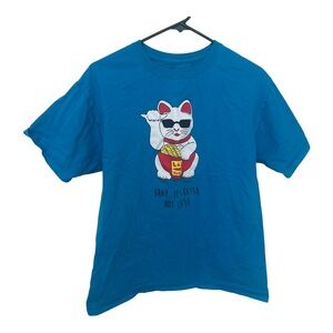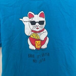 *New* Hanes blue lucky cat graphic “Brah, it’s Katy not catsu” shirt