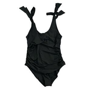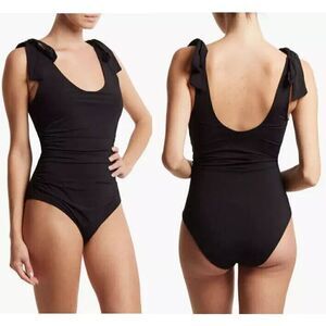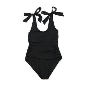 Flirty shoulder ties and subtle ruching bring chic style to this one-piece swimsuit complete with moderate back coverage.