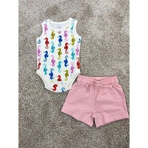 New Hanna Andersson 3-6 Seahorse Bodysuit Shorts Set
