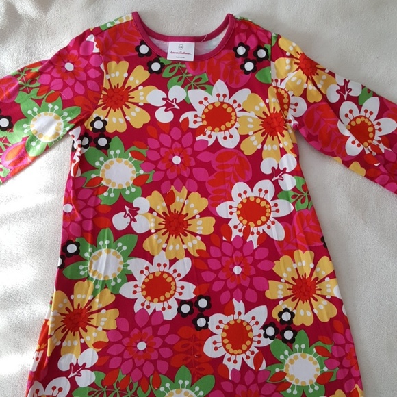 This a new Hannah Andersson dress that was washed but never worn. Long sleeved, with bright pink floral pattern. Would look adorable with boots and a jean jacket. Girls size 130, which is around a size 8. Excellent condition.
