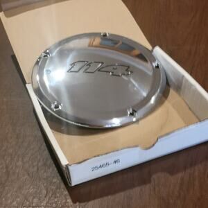 New Harley Davidson Chrome 114 Derby Cover part #25700389. New, in original box. (box slighlty soiled). NO SCREWS!