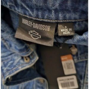 New Harley Davidson Motorcycle Denim Jean Jacket Women’s Size SMALL Logo On Back