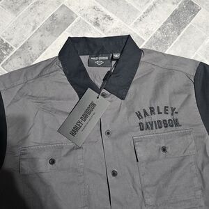 New Harley-Davidson Men's Staple Colorblock Shirt Blackened Pearl Size LARGE