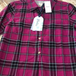 New Hatley Plaid Popover Blouse Half Button Front size Small