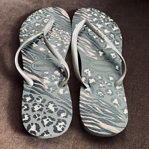 New Havaianas Slim Metallic Grey African Tropical Jungle Animal Print 11/12 US